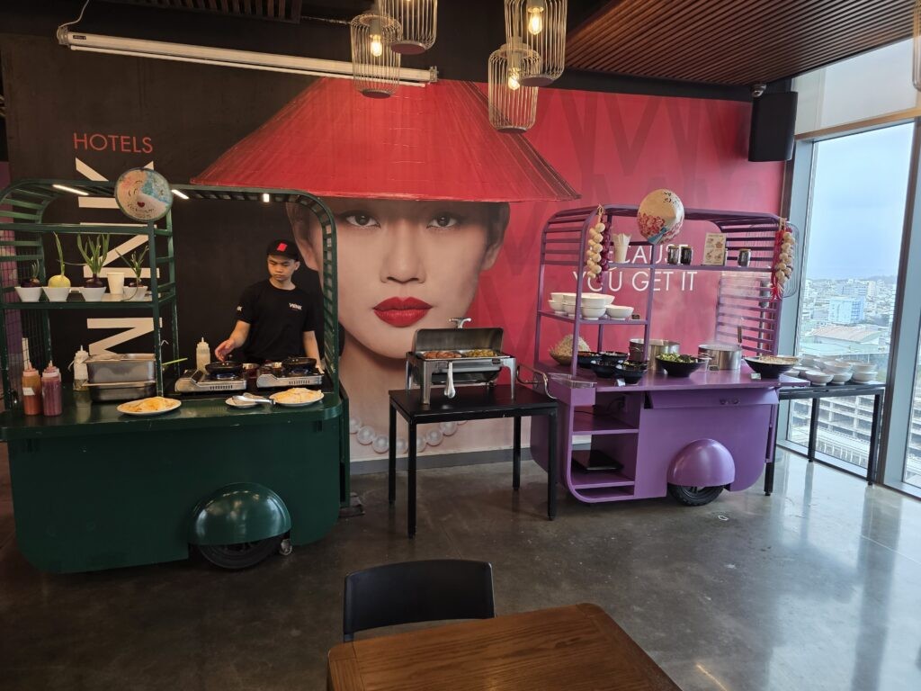 Сніданок включений і напрочуд різноманітний, з гарячими та холодними стравами, включаючи станцію з яйцями, станцію з фо та випічкою. Кава, приготовлена баристом, доступна за невелику доплату.
